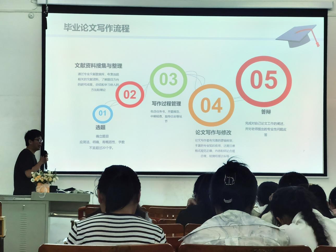 针对学生毕业论文的重要性,讲师在论文内容和写作方法上分别做了讲述,会后针对个别同学的问题,一一解答。通过培训,解决了很多同学书写毕业论文的误区,帮助学生掌握了快速书写毕业论文的方法和技巧。(张新玲摄)