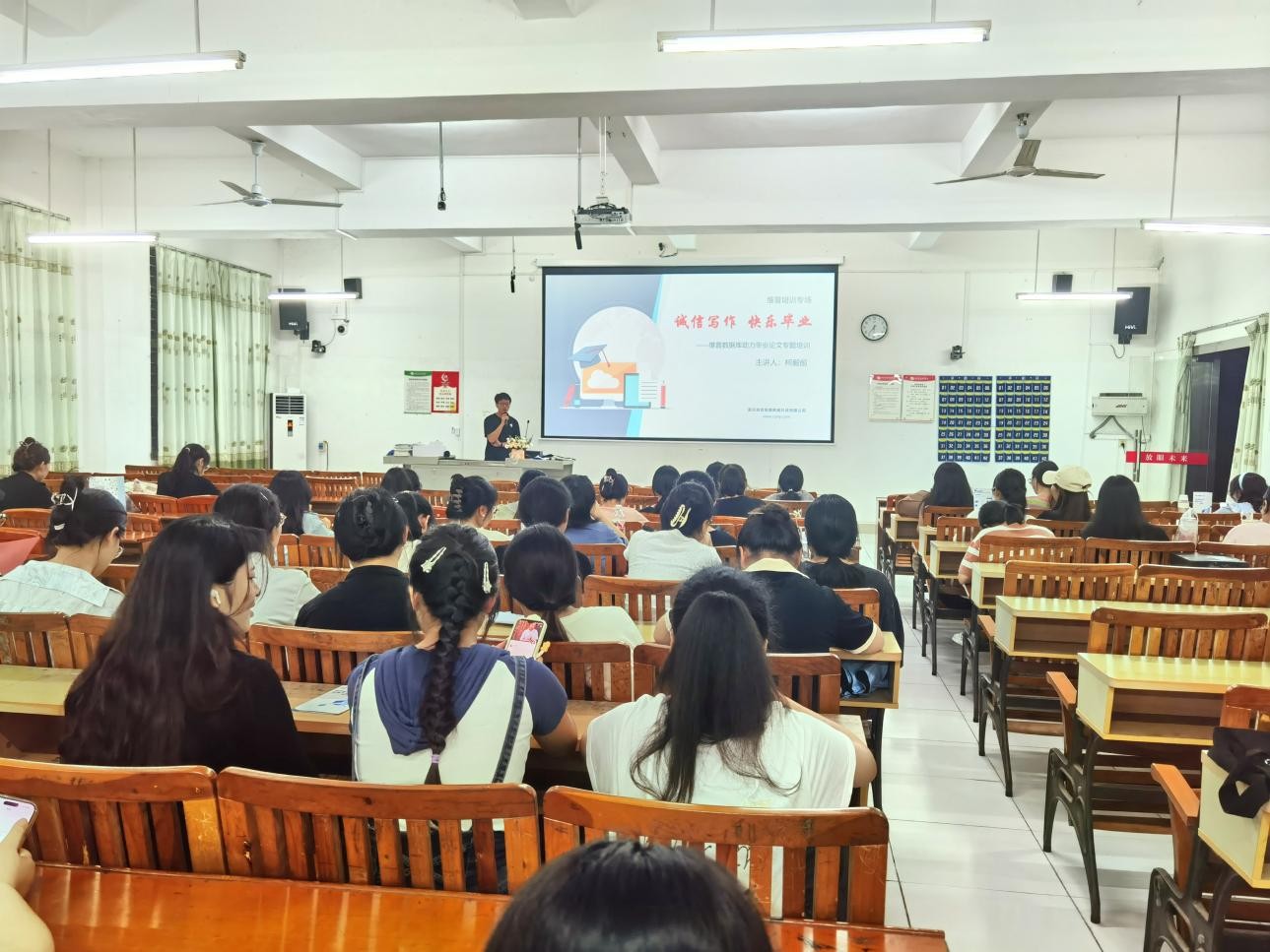为进一步提高数字资源利用率,帮助学生提高毕业论文写作水平,2024年4月25日晚上7:30,图书馆特邀重庆维普智图数据科技有限公司讲师来我校开展毕业论文专题培训,培训场地安排在觉悟楼206教室。