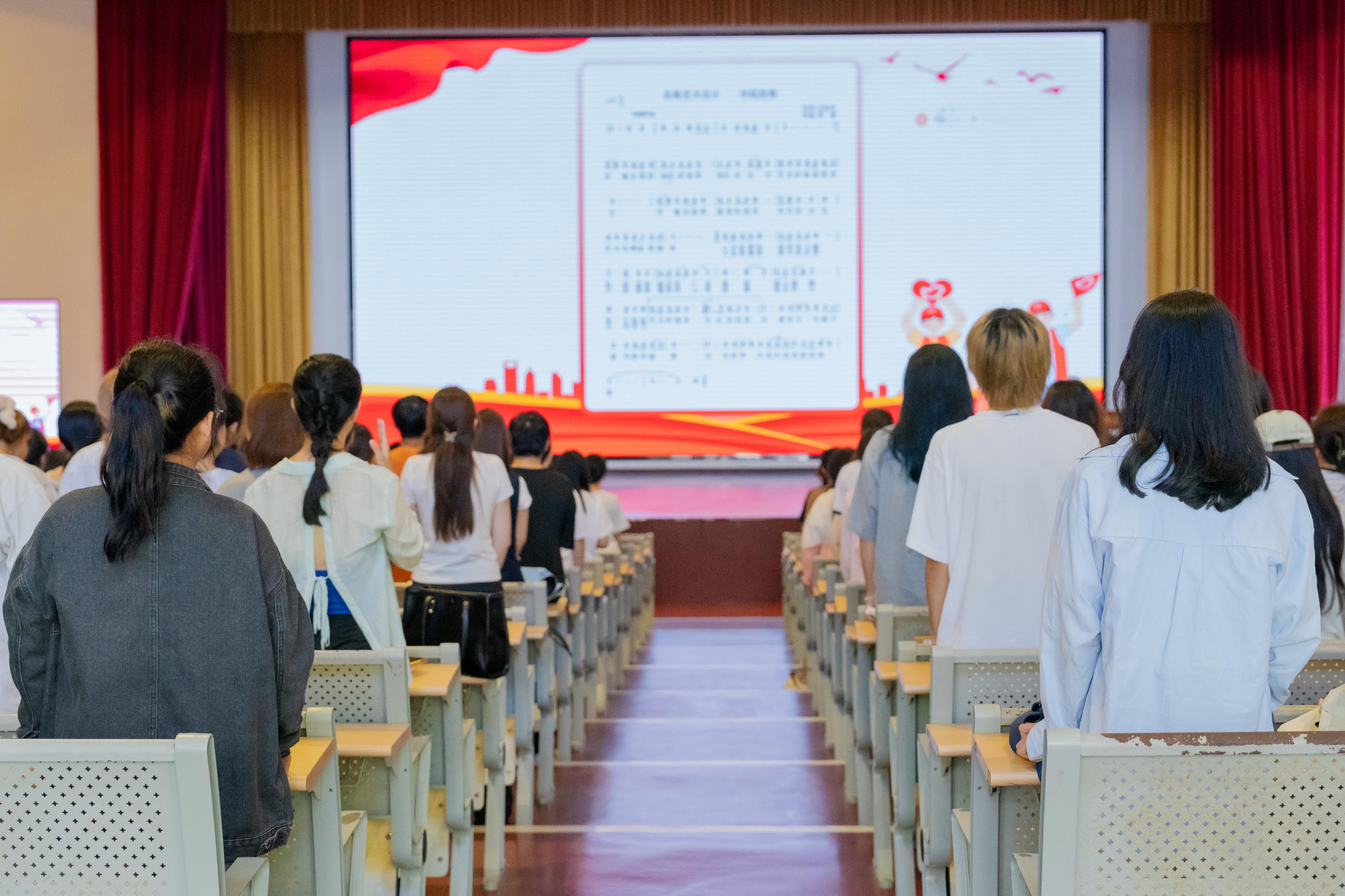 伴随着激昂的旋律响起,现场师生齐声高唱校歌。在歌声中,志愿者们更深切地感受到了身为学校一份子的自豪与责任,也为即将开启的志愿服务活动注入了满满的精神动力。