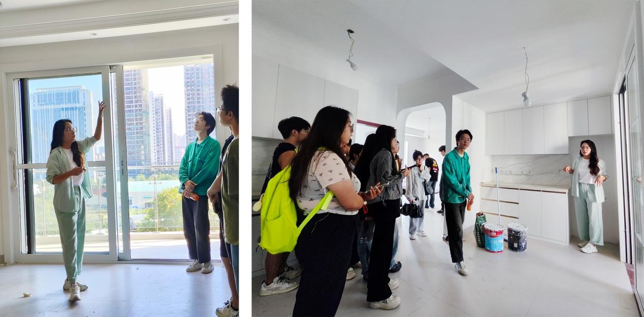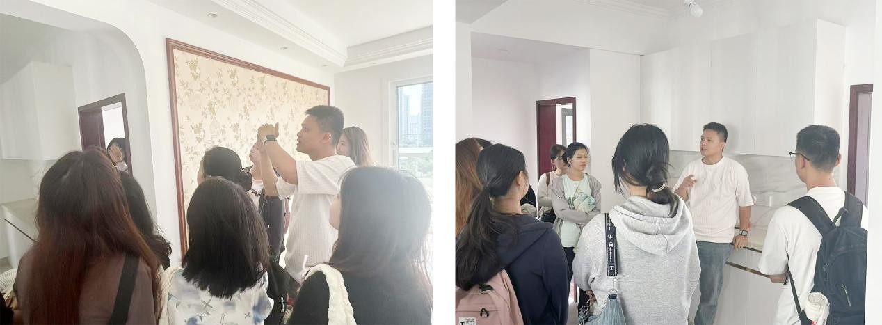 在测量活动结束后,教师又带领学生前往已装修好的户型进行调研,并讲解装修前后的对比和细部的完善,通过对整体施工工艺的讲解,学生能够更好的将课堂理论知识与实践联系起来,师生在项目地中充分感受空间的功能性,实际观察整体规划设计中涉及的知识点,让学生感受场地。提醒学生用心去观察生活,深入思考,用心设计。通过本次实地项目勘察,增加了实践经验,并为以后专业学习扎实打牢了实践基础。(建环学院实验室/摄)