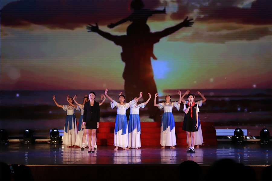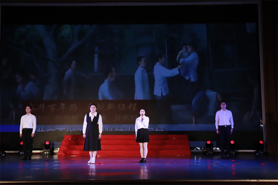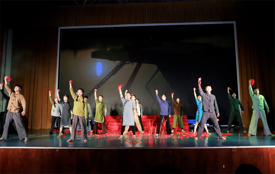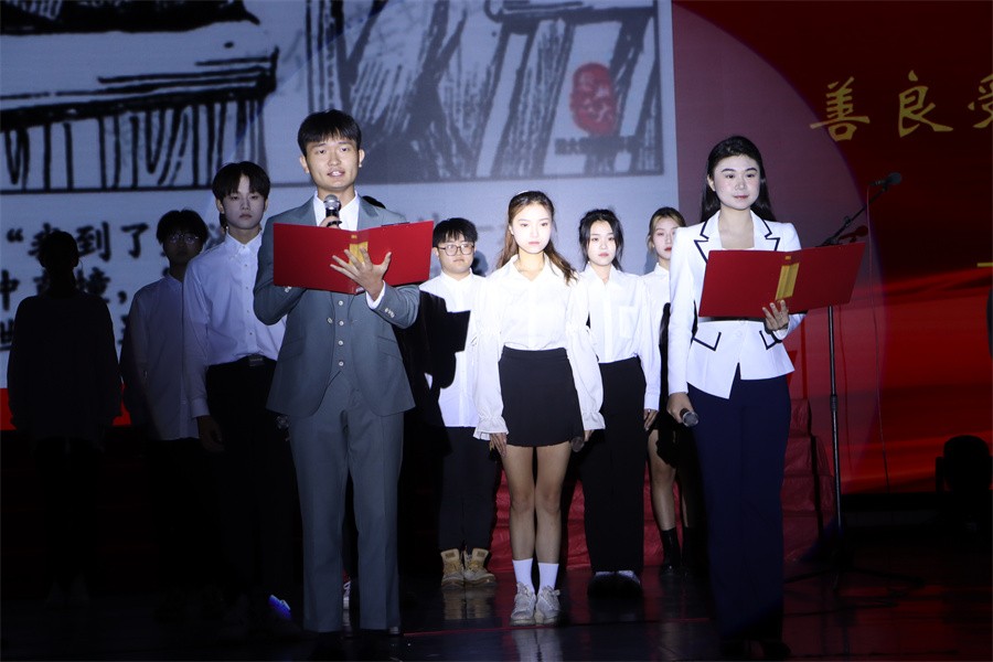 第三篇章“砥砺奋进新征程”,展示了党的十八大以来中国特色社会主义建设取得的伟大成就,以及党的二十大胜利召开具有的重大意义。《中国这十年》节目由马克思主义学院覃家惠教授结合党的二十大报告精神,生动展示了中国这十年取得的历史性成就和发生的历史性变革,使在场师生进一步增强民族自信心和自豪感,坚定实现中华民族伟大复兴中国梦的志气、骨气、底气。歌曲《领航》表达了师生们对中国共产党的深厚情感,对实现国家富强、民族振兴、人民幸福的坚定信心。集体诵读《请党放心强国有我》表达了北艺学子坚定理想信念,矢志拼搏奋斗,不断砥砺奋进的铿锵誓言。
