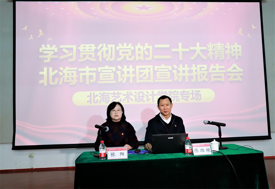 12月8日上午,北海市宣讲团成员北海市人民政府经济研究中心党组书记、主任陈雄根到我校开展题为《学习党的二十大报告》的专题宣讲。我校党委书记张阳主持报告会。