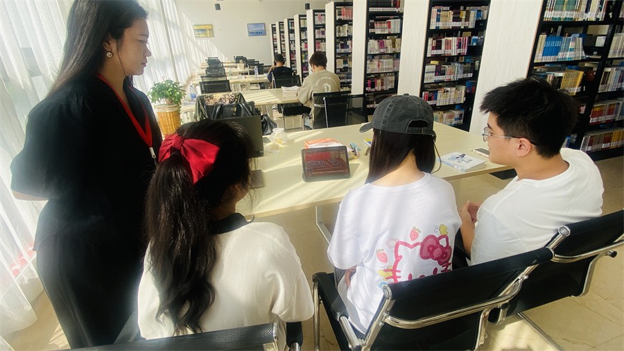 党的二十大胜利召开,作为一名在校大学生,我感到无比自豪,中国每一次的进步都是有目共睹的,科技进步 、时代发展,作为新时代大学生,我要不断拓展思维,勇于创新,以青春之名不懈努力奋斗,为祖国贡献自己的力量。(周小琪、练馨怡(实习记者)、俞柯云(实习记者)/摄)