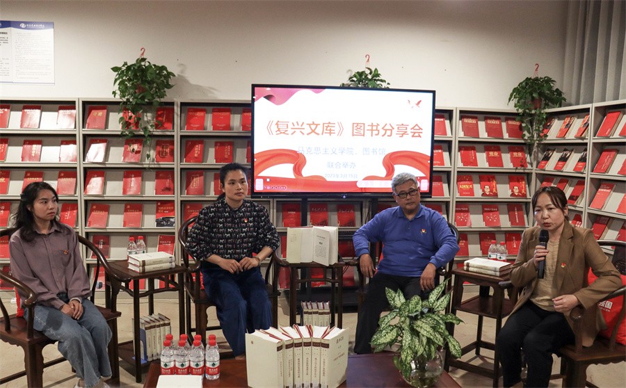 3月15日晚,由马克思主义学院、图书馆主办,校团委协办的《复兴文库》图书分享会在我校西校区图书馆“红色阅读角”成功举办。