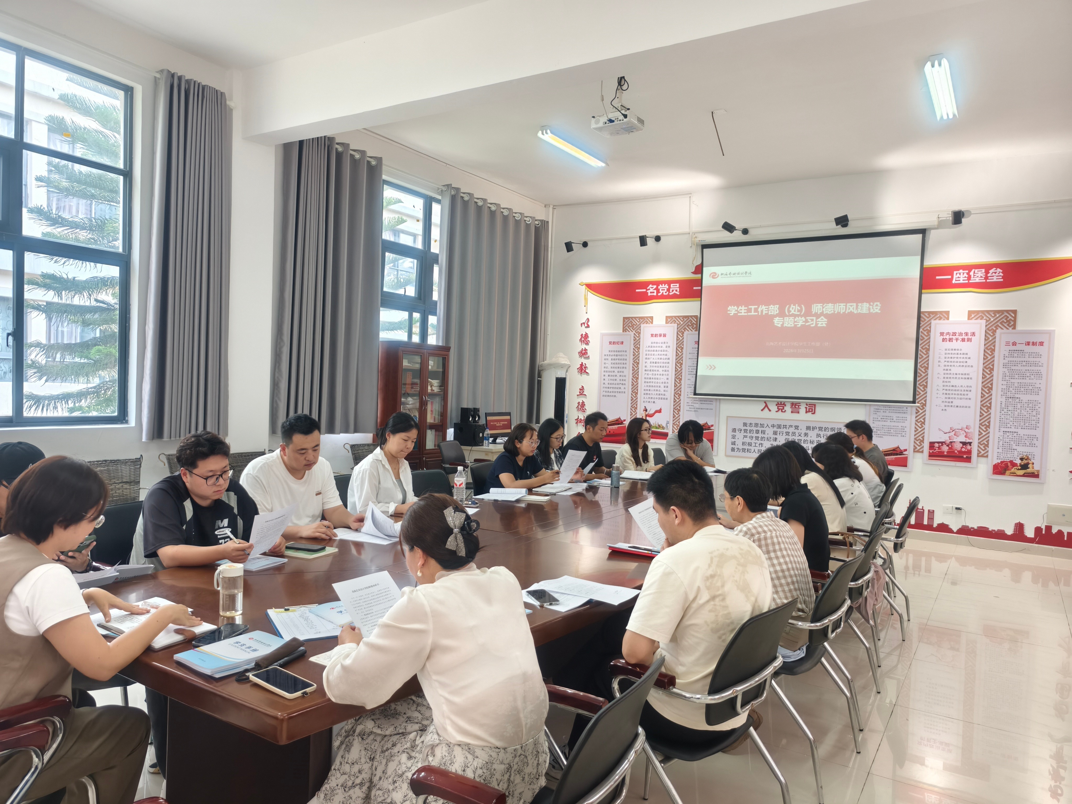 此次学习会进一步强化了部门教职工的师德意识,明确了职业行为底线。学生工作部(处)将持续加强师德师风建设,引导全体人员以德立身、以德立学、以德施教,为培养德智体美劳全面发展的社会主义建设者和接班人贡献学工力量。