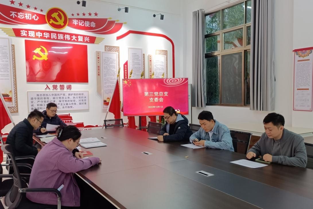 2022年12月1日下午五点,第三党总支在综合楼102召开了讨论党员转正及审议预备党员会议,会议由党总支书记庞定坤主持,5名党总支委员参会。
