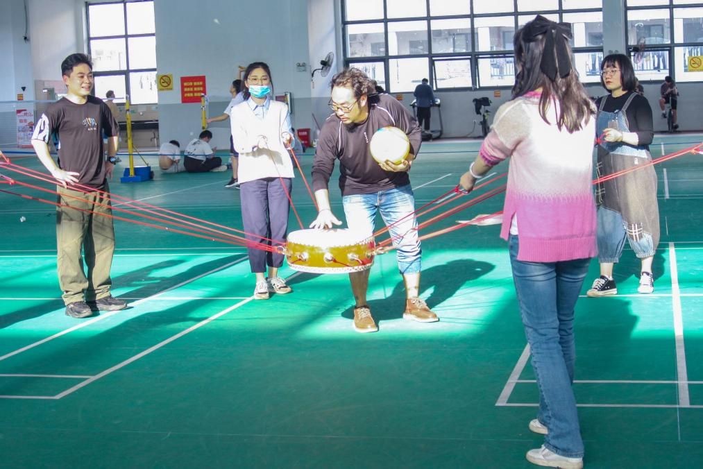 此次活动以团建的方式进行,参加活动的全体女职工分成5个小组开展集体趣味文体游戏,趣味游戏比赛“同心击鼓”“双人推手”“绑腿接力赛”“踩气球淘汰赛”等将活动氛围推向高潮。在游戏中,女教职工们同心合力完成各项比赛项目,为团队荣誉而战,充分展现新时代女职工团结一致、奋勇向前的团队拼搏精神。活动现场气氛热烈,妙趣横生,掌声、加油声此起彼伏,欢笑声不绝于耳。