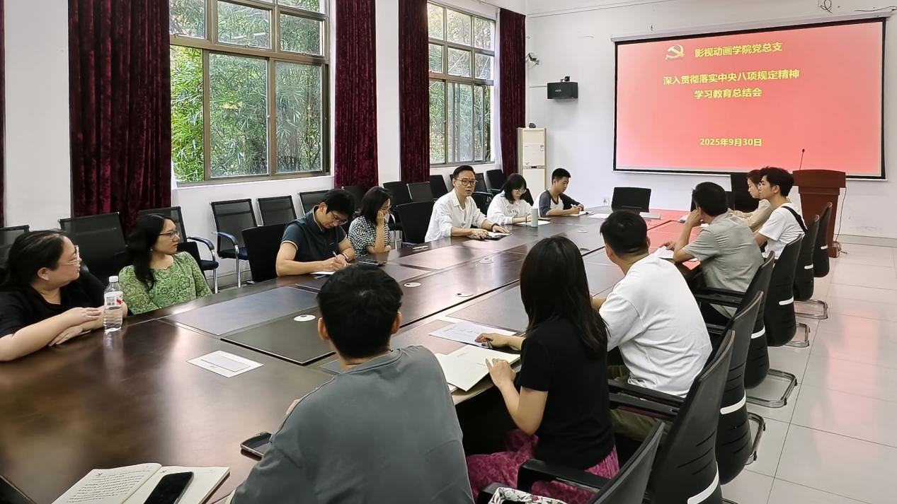 9月30日,影视动画学院党总支召开深入贯彻落实中央八项规定精神学习教育总结会,传达学习习近平总书记重要指示精神,总结学院学习教育开展情况,部署推进作风建设常态化长效化工作。学院党总支书记张帆主持会议并讲话。