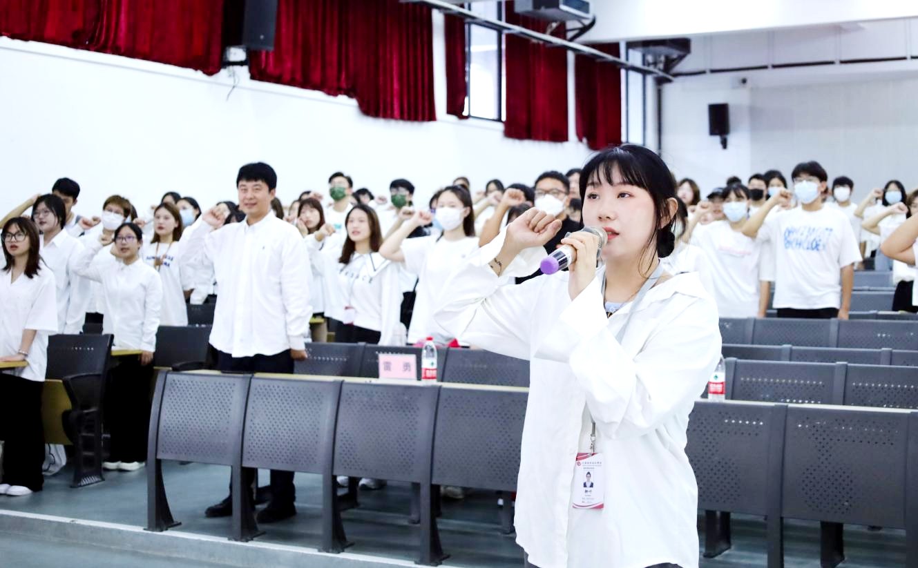 大会第七项,为更好地凝聚力量、振奋精神,建筑与环境艺术学院分团委学生会及参与本次大会的老师们全体起立奏唱校歌。随着大气磅礴、旋律优美的音乐响起,用歌声展现出了青春的热情,也唱出了对未来的憧憬。