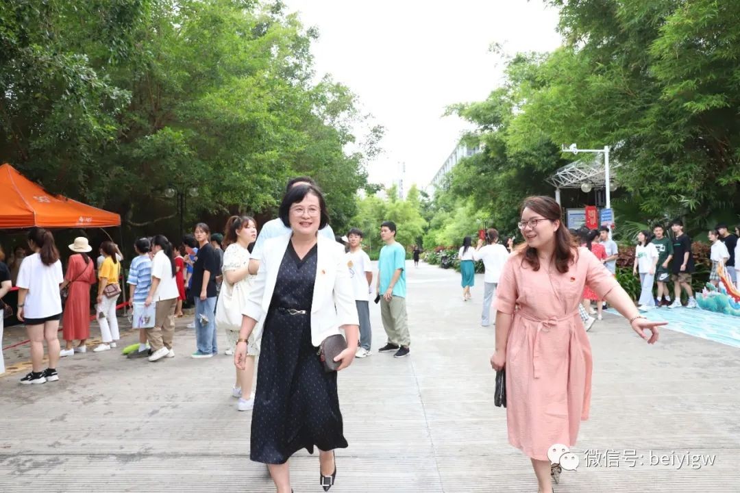 活动期间,我校党委书记张阳,党委副书记、副校长彭仁,党委副书记韦静月等校领导到达游园活动现场细致观看每个活动开展情况,亲切地与全校师生欢聚一堂。