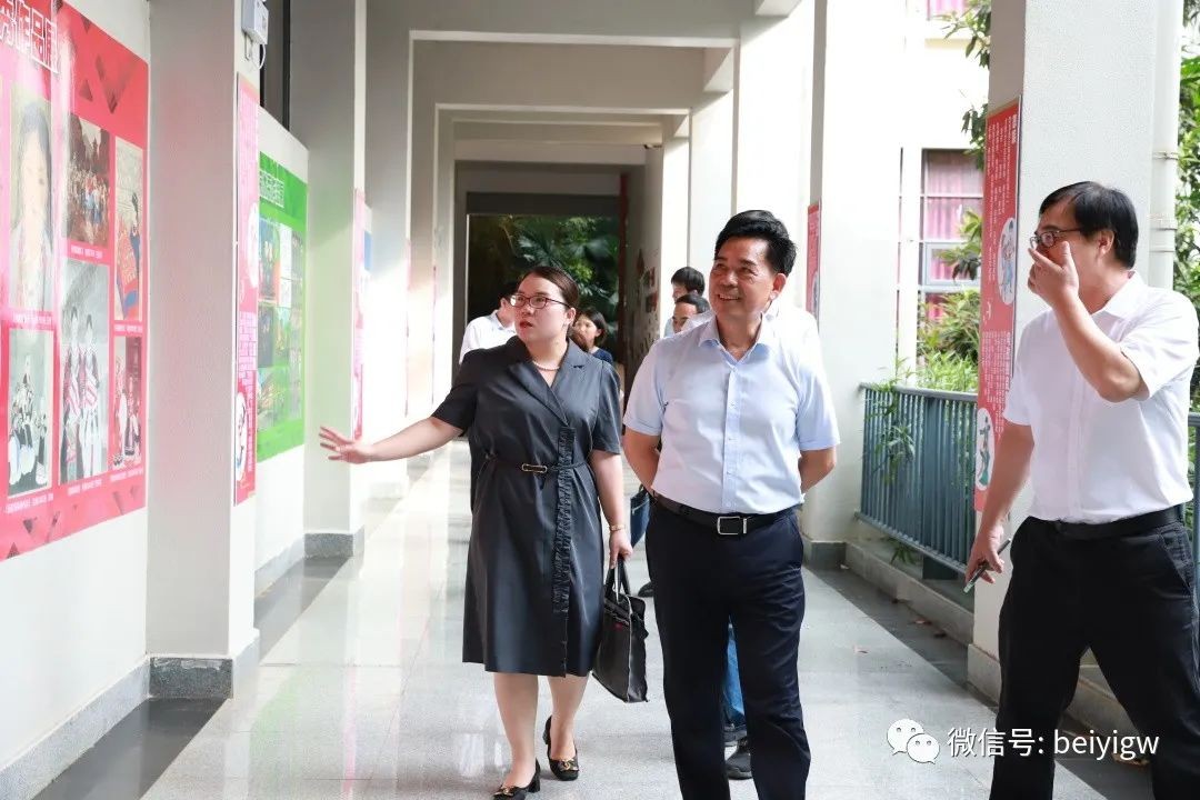 陈志宇一行在校领导郑念贻、韦静月、刘朝雄的陪同下,参观了我校民族团结进步教育基地和“校政企行深度融合,服务地方经济发展”展厅等相关教学成果展。