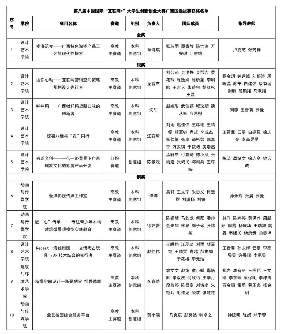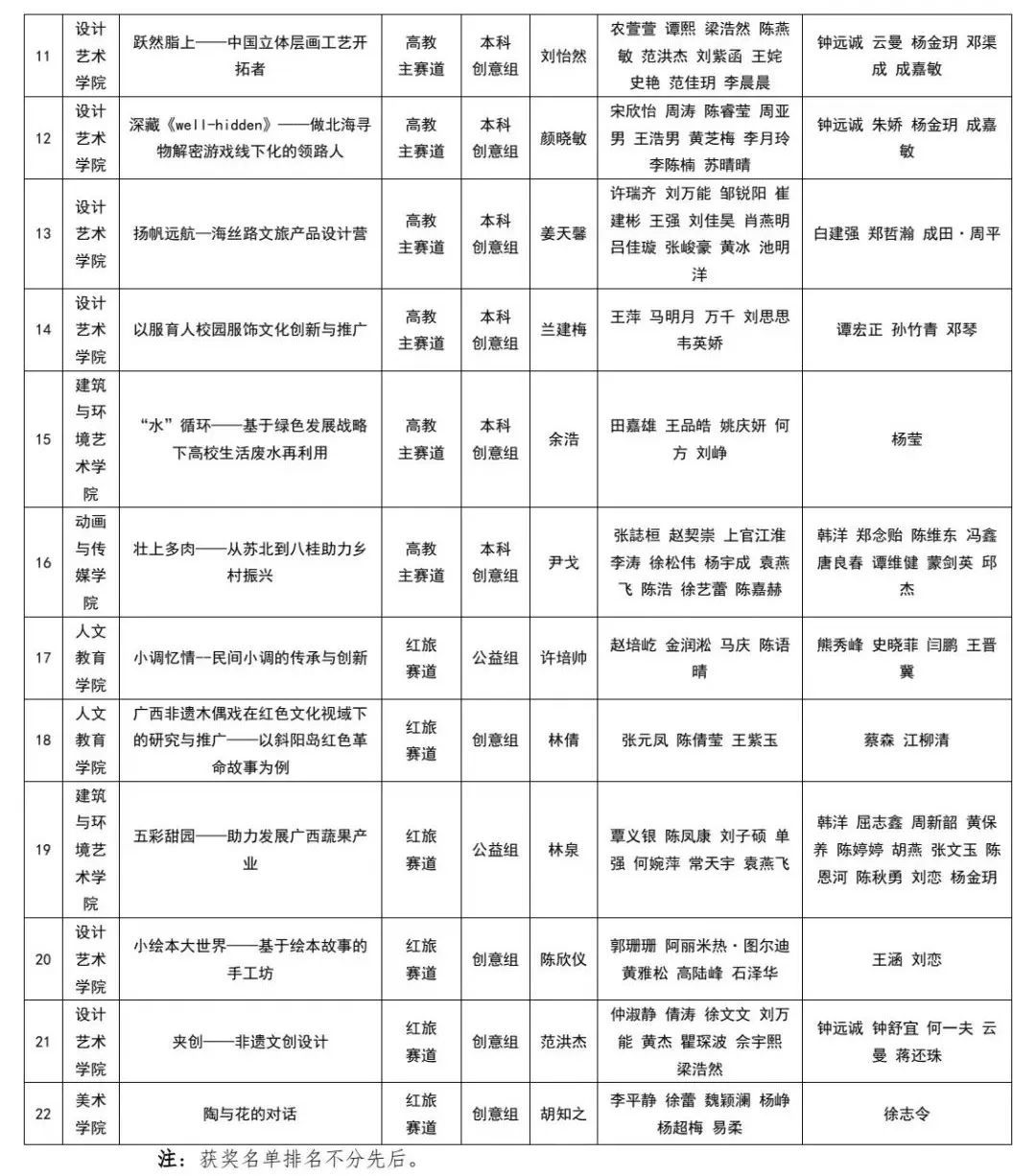 接下来,学校将总结比赛经验,强化多方协同,持续深化创新创业教育改革,努力培养造就更多理想信念坚定、专业知识扎实、创新创业能力突出的艺术人才,为服务国家创新驱动发展战略和广西经济社会高质量发展贡献更多北艺力量。