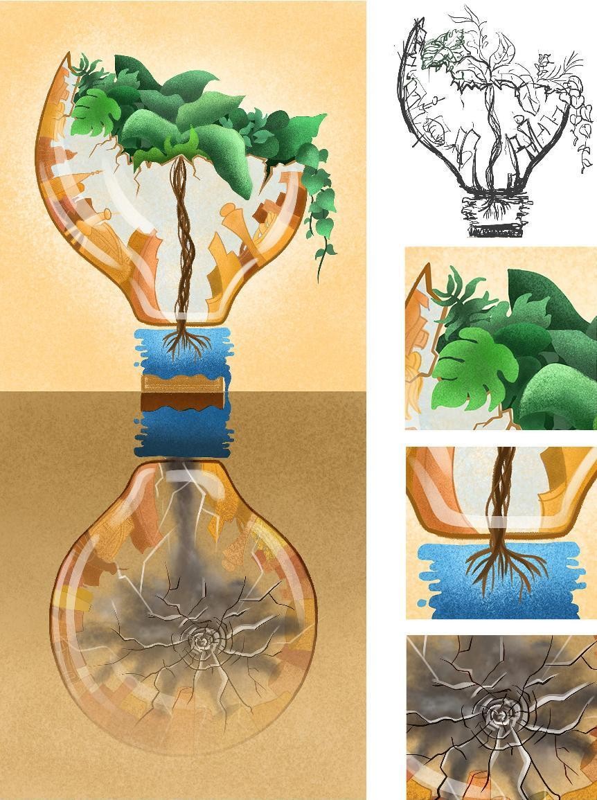 绘画 1905 班 林燕娴《绿植的境界》 指导教师:孙海洋