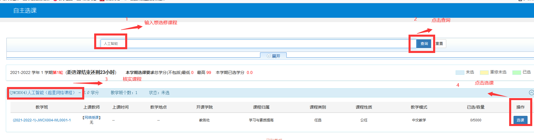 教务处将根据初选选课人数调整部分线下课程,达不到开课人数标准(一般最少为30人)的课程将被删除。请同学们务必于1014日(周)上午9点40分至下午15:00点,登录选课网站查看自己的选课结果。如果某门课程被删除,请选择该课程的同学持续关注选课系统并及时改选其他课程。