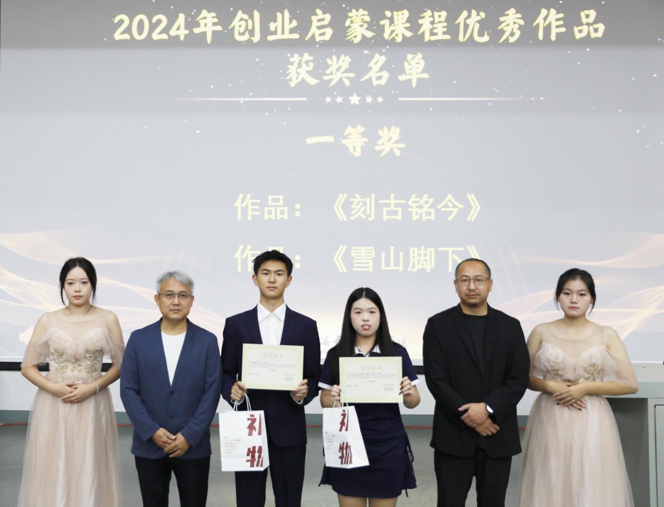 创业者需要坚定的信念和持之以恒的毅力,这些品质是实现梦想的关键。通过创业启蒙课程,学生们学会了如何在挑战中成长,如何在失败中寻找新的机会。典礼最后,学院领导与获奖同学合影留念,为同学们的未来人生道路送上了期待与祝福。创业启蒙课程优秀作品颁奖典礼不仅是对学生们学习成果的认可,也是对他们未来创新创业之路的鼓励。通过这样的课程和活动,学生们将不断学习、进步,为未来的创业之路打下坚实的基础。本次颁奖典礼在师生的欢声笑语中圆满结束。(王荣禄、王涛/摄)