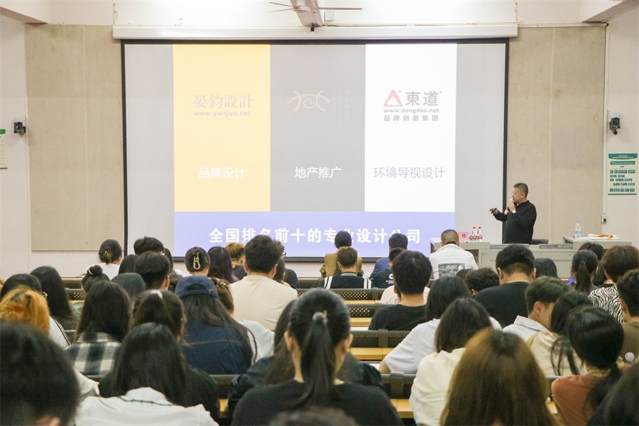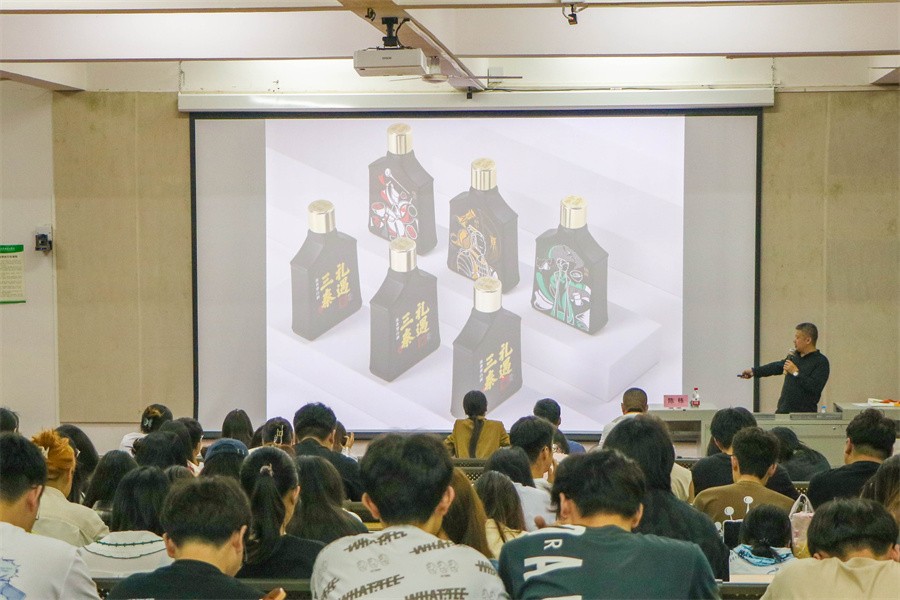 紧接着,陈栋教授分享了自身在创业中的感悟。他在创业期间,累计为近500多家企业提供过如标志、画册、VI、手提袋、地图、周边VI、包装、品牌等专业的设计服务,他还通过详细介绍自身为中国人民解放军国防大学政治学院西安校区的校徽设计过程,向在场师生说明,时代变迁之快,为了增强与客户的贴合度,要在创作上进行孜孜不倦的创新,加强对客户群体的认知,掌握受众喜好,在创业过程中不断打磨,加深感悟,用有深度的作品获得客户的信任。
