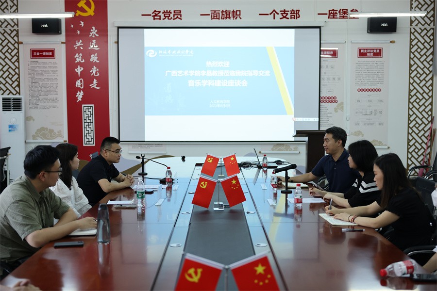 在“音乐学科建设”座谈会上,李晶教授详细介绍了广西艺术学院音乐教育学院的学院概况、专业建设、课程建设、学生就业及学院未来的发展方向,与会教师就艺术教育方向的几门核心课程与李教授进行交流。人文教育学院副院长李谦出席座谈会并与李晶教授进行了深入探讨,李教授肯定了人文教育学院的办学理念,并结合广西艺术学院音乐教育学院的专业设置对我校音乐课程建设提出了宝贵的建议。