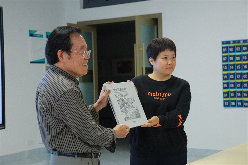 讲座的最后,林驹教授为我校捐赠了其绝版作品集,并为参会的领导、教师、学生们逐一讲解会场展出作品。