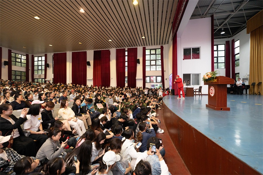 讲座伊始,章金莱老师回忆了年少时期三年刻苦学戏曲考入昆剧团,从零开始到终成一代经典的奋斗经历。“只有拥有精深的文化知识,才能够把表演艺术提高到新的高度。”章金莱老师表示,这句话不仅是父亲对他的劝勉,更是促进他每年坚持创作的力量之源。他呼吁青年学子要找准自己的人生目标,总结过去,重视现在,设计未来,历经磨难,迎接光明,成为自己人生道路上的行者,为自己赢取更多的选择,不负青春时光,创造出更加璀璨多元的人生。