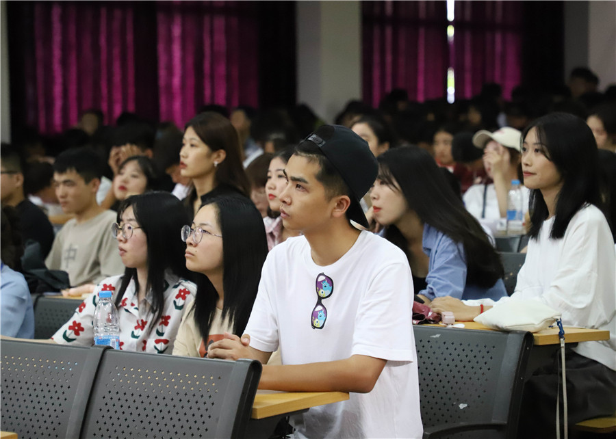 讲座正式开始,周游教授对初入大学的同学们提出了两点建议:一是要切实制定目标,扩大学习范围;二要好好珍惜大学时光,享受青春。周游教授表示,虽然我们籍贯不同、来自不同的地方,但正是对学习的探索、对梦想的追逐将我们聚在一起。在某种程度上也与播音有异曲同工之妙。
