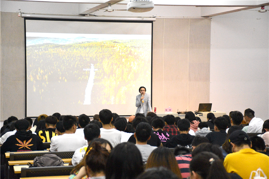 讲座过程中,张昕老师还分享了他的个人作品,为同学们分析了建筑设计行业目前的发展状况以及面临的问题和挑战。他希望同学们不断学习,广泛了解行业及社会需求,形成独立思考能力,做一个善于发现问题、思考问题的优秀建筑设计师。