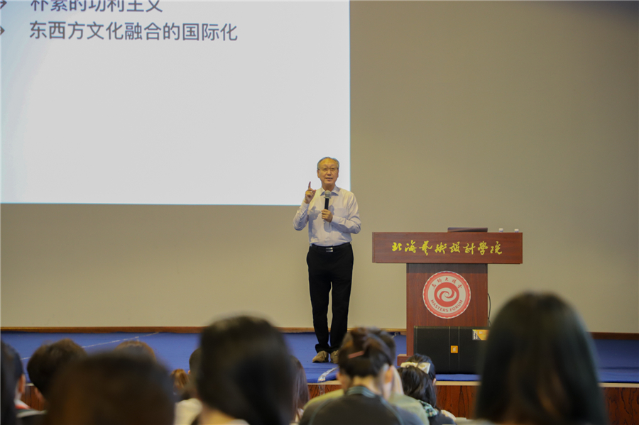 讲座临近尾声,李教授讲到,学习服装设计一定要对文化现象有所研究,努力创造出属于自己的文化,去影响未来的世界。李教授表示,北艺有着浓厚的艺术氛围,各个艺术专业之间可以融会贯通。他鼓励同学们敢于创新尝试,磨练艺术感觉,不断创作出更多优秀的作品。