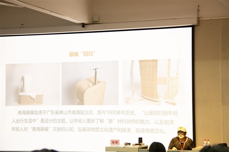 此次讲座中,张昕教授以非遗衍生品设计、非遗衍生品设计原理以及途径、国风灿烂走向世界三个版块向在场师生进行具体讲授。