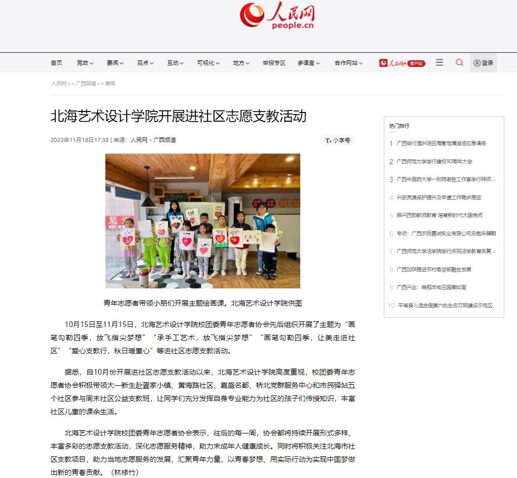 人民网:北海艺术设计学院开展进社区志愿支教活动