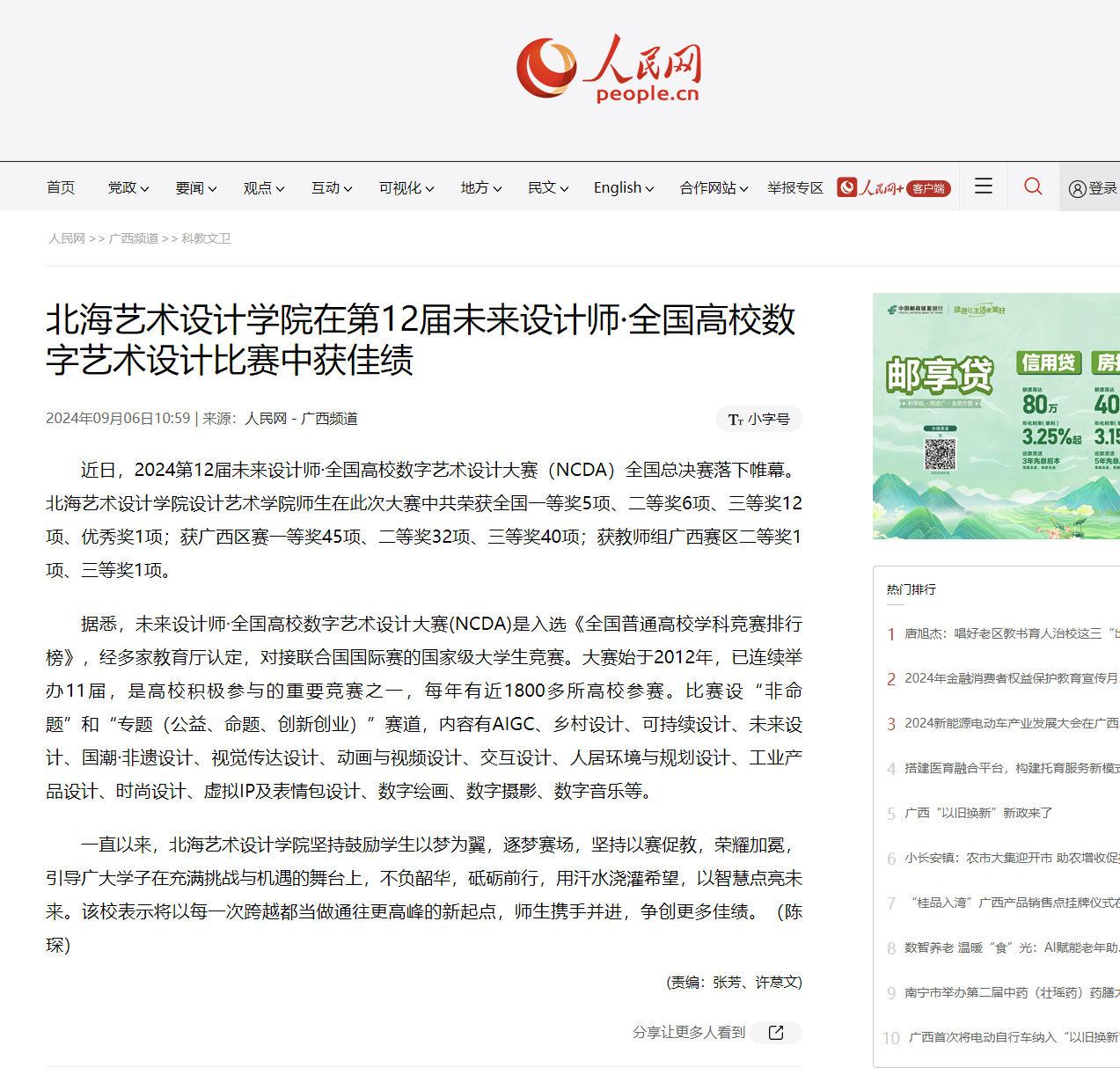 人民网:北海艺术设计学院在第12届未来设计师·全国高校数字艺术设计比赛中获佳绩