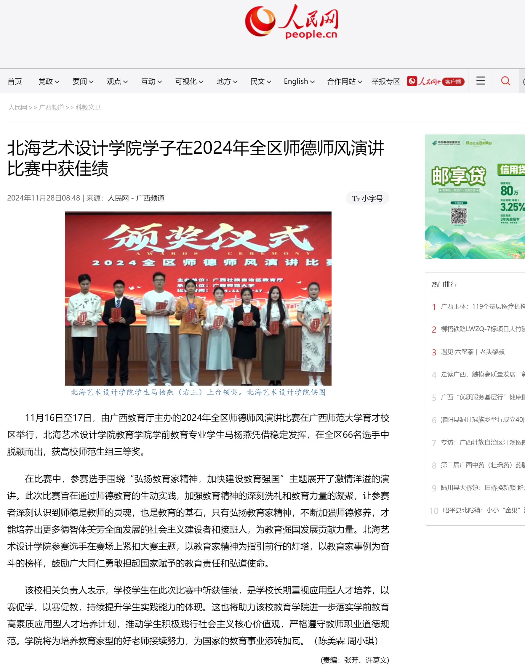 人民网:北海艺术设计学院学子在2024年全区师德师风演讲比赛中获佳绩