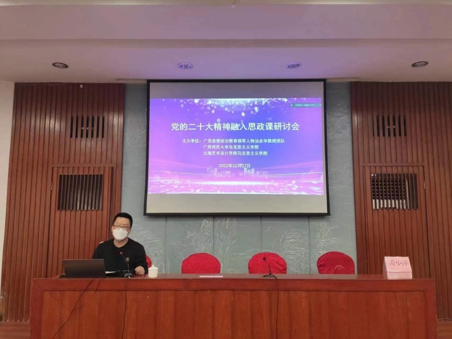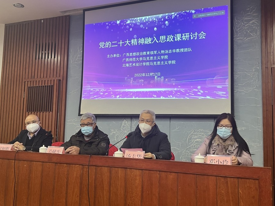 近日,马克思主义学院受邀与广西思想政治教育领军人物汤志华教授团队、广西师范大学马克思主义学院在桂林联合举办了“党的二十大精神融入思政课”研讨会。广西师范大学、北海艺术设计学院、桂林电子科技大学、福建师范大学、集美大学、广西民族大学、南宁职业技术学院等区内外多所高校70多人参加。