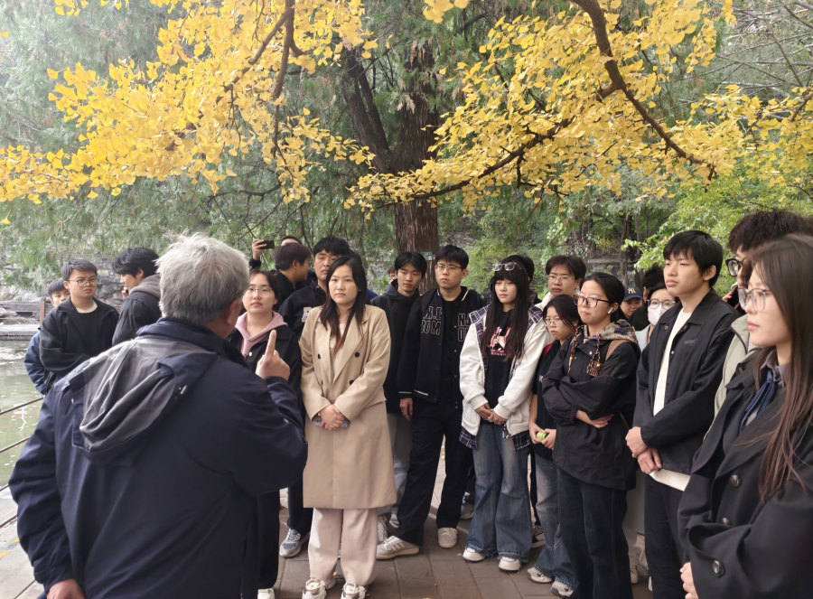 10月27日,一场耳目一新的思政课在北京香山双清别墅前银杏树下举行,马克思主义学院院长姜献生教授主讲,约180名大四学生参加了此次现场教学活动。