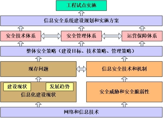 建设实施规划是在安全管理体系、安全技术体系、运行保障体系设计的基础上进一步制定的建设步骤和实施方案。在建设实施规划中突出体现了分步有序实施的原则。