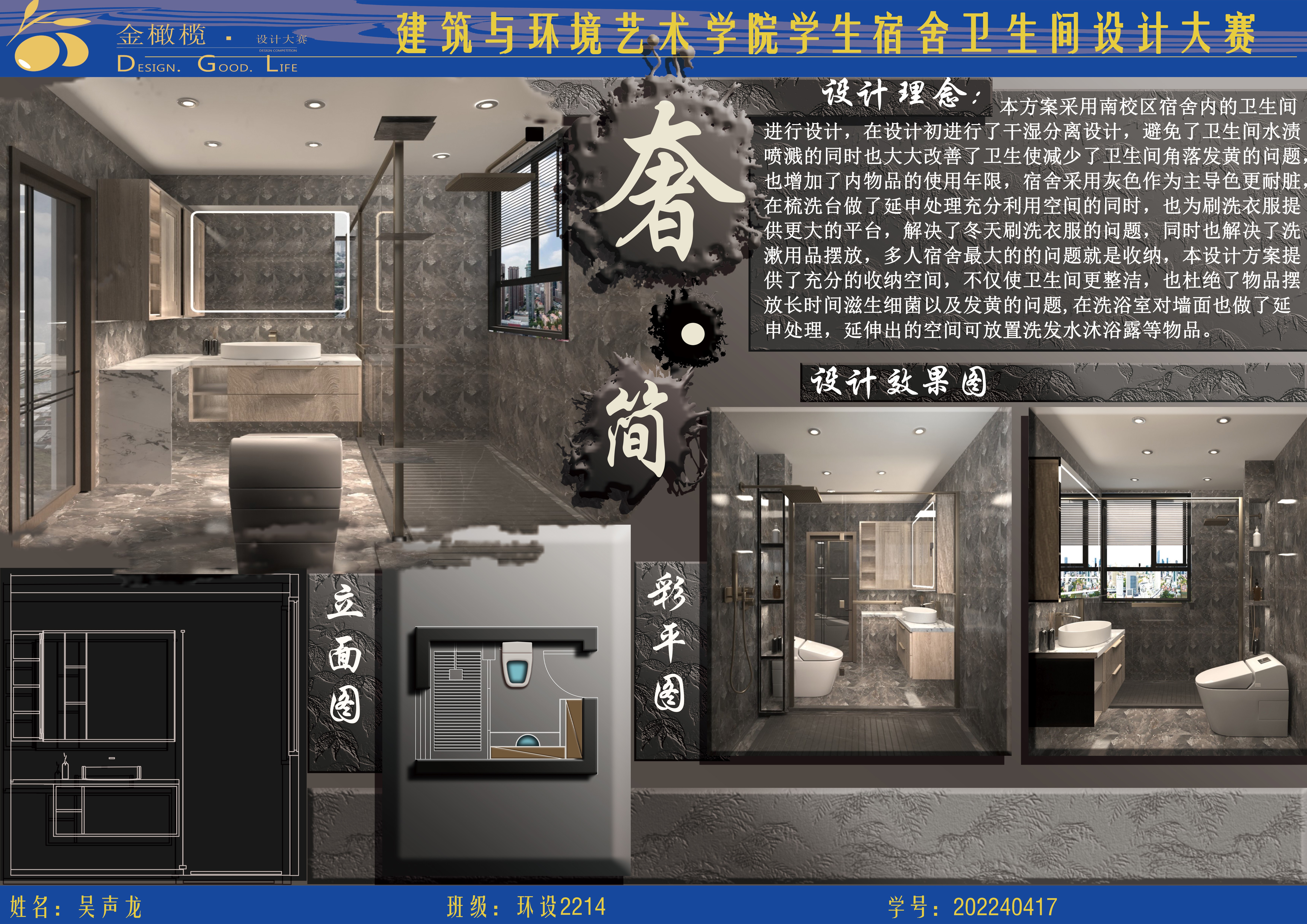 2024年 建筑与环境艺术学院 金橄榄 学生宿舍卫生间设计大赛