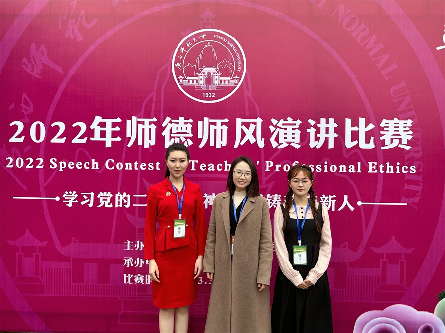 3月17日-19日,由广西壮族自治区教育厅主办的2022年师德师风演讲比赛在广西师范大学育才校区举行,本次演讲比赛以“学习党的二十大精神 培根铸魂育新人”为主题。我校人文教育学院学前教育专业2003班隋媛、2101班徐梦璐参赛,其中隋媛同学凭借稳定发挥,在全区63名选手中脱颖而出,进入决赛并喜获高校师范生组三等奖的佳绩。