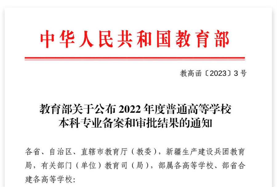 近日,根据《教育部关于公布2022年度普通高等学校本科专业备案和审批结果的通知》(教高函〔2023〕3号),教育部对我校申请备案的汉语国际教育(专业代码050103)专业予以备案。