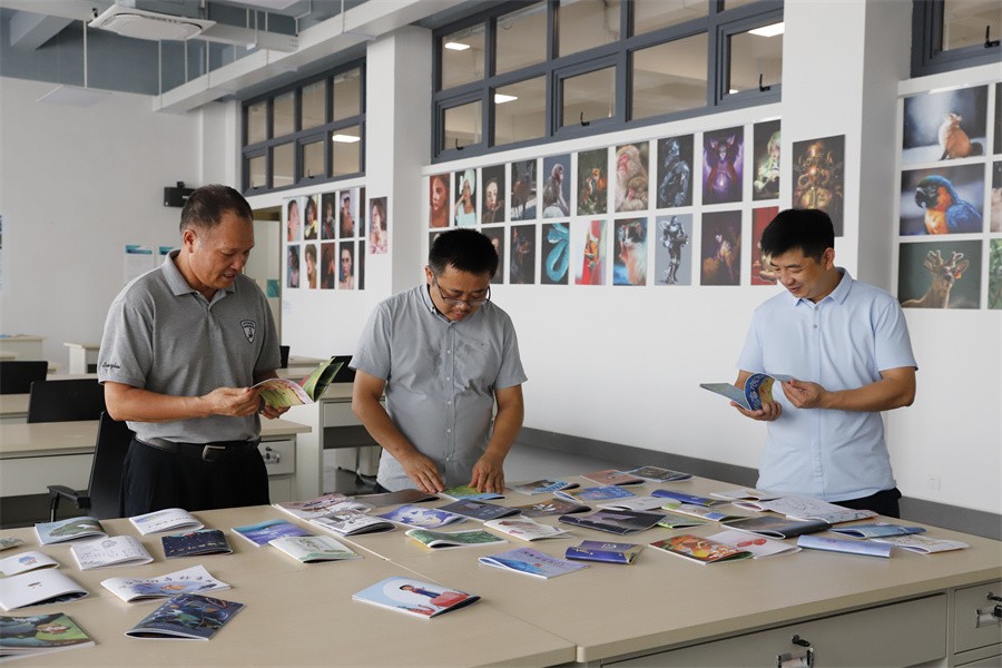 会前,党委副书记、副校长彭仁,美术学院副院长龚为陪同杨一笔书记一行先后参观了学校艺术楼、“本科教学综合改革成果展”“校政企行协同育人 服务地方经济发展”展厅和大师工作室、学生作品展、党建工作展板等,详细了解学校学科建设、师生作品创作、产学研融合、校企合作、教育教学成果转化等方面的情况。