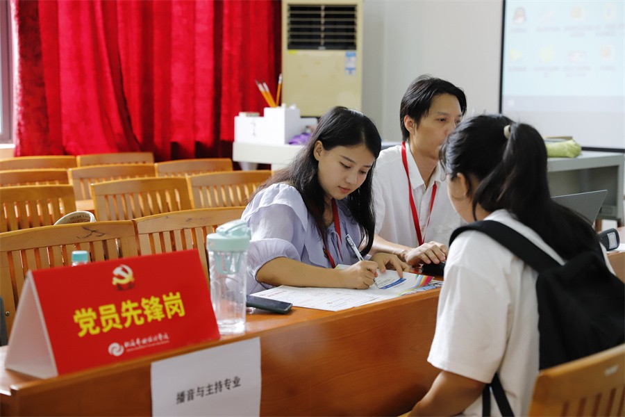 新生报到期间,校门、校园主干道,迎新现场、宿舍区等主要区域迎新氛围浓厚,各项迎新标识清晰到位。学校在主要交通枢纽车站、机场等均设置了迎新接待点详细指引和帮助新生和家长前往学校。学校优化校内报到“一站式服务”流程,设立党员先锋岗和新生绿色通道接待处,从入校、报到、办理住宿各环节安排均有志愿者和工作人员提供热心服务,志愿者积极主动参与指引和协助工作,确保迎新报到快捷、便利、高效。