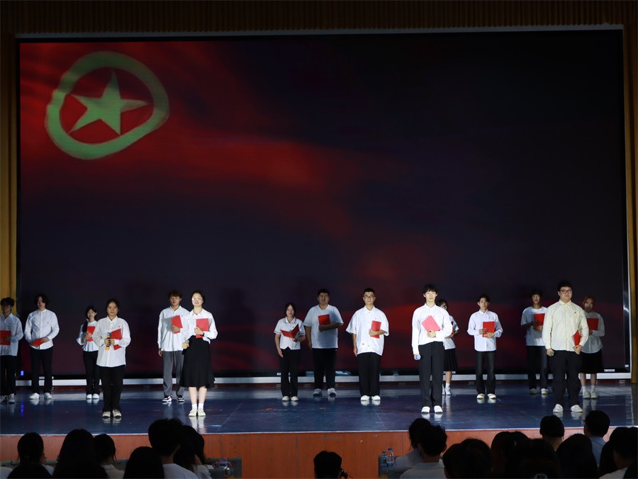现场,团委书记唐良春带领新老团员进行入团宣誓。新老团员们整齐肃立,庄严宣誓。礼堂内,铿锵有力的誓词在礼堂中久久回荡,这不仅仅是简单的誓言,更是砥砺奋斗的决心。希望每一位团员追寻对青春的理想,担当对未来的使命,坚守矢志不渝、砥砺奋进、共筑梦想的庄重承诺。