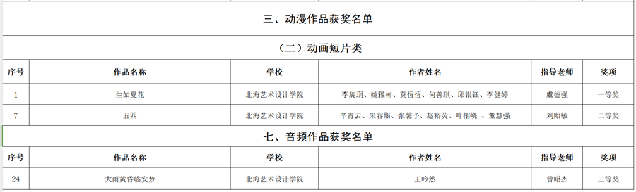 近日,自治区教育厅、自治区党委网信办公布了第十届全区大学生网络文化节和2024年全区高校网络教育优秀作品推选展示活动获奖名单,我校共有8项作品获奖,其中动画短片作品一等奖1项,二等奖1项;优秀新媒体作品一等奖1项,三等奖1项;微视频作品二等奖2项;微电影作品三等奖1项;音频作品三等奖1项。