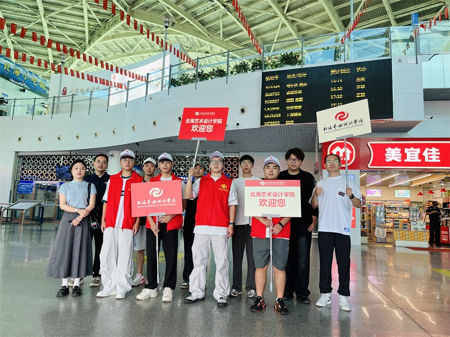 为保障2025迎新工作高效有序推进,学校各职能部门提前谋划、通力协作,从氛围营造到服务保障,全方位为新生打造便捷、温馨的报到体验。校园内,校门、主干道、迎新现场及宿舍区等关键区域均布置了鲜明的迎新标识,浓厚的欢迎氛围扑面而来;校外,学校在北海车站、机场提前设立迎新服务点,安排专线接送车辆,确保新生安全抵达校园。
