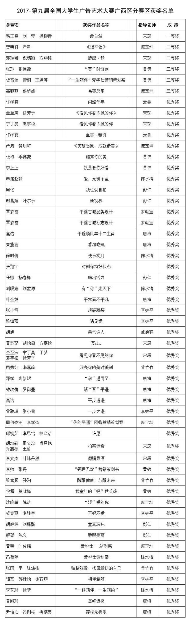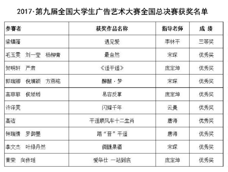 附:第九届全国大学生广告艺术大赛获奖名单