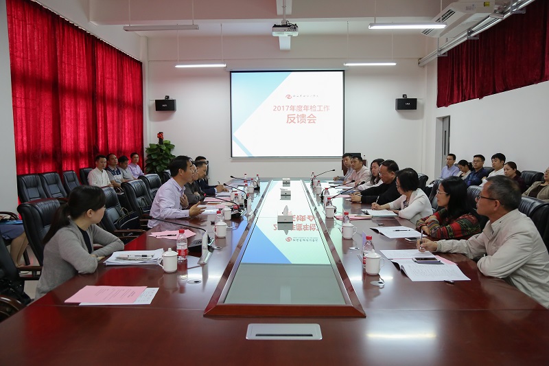 汇报会上,李栋学组长传达了教育厅此次年检工作的要求,我校副校长胡胜从办学定位、办学成果、管理机构和制度建设、办学条件、师资队伍、招生及学位证书管理、资产与财务管理、和谐校园建设等方面,详细介绍了学校2017年度发展建设情况。随后,检查组根据年检内容,详细询问、核查年检档案资料,并分别召开师生座谈会了解情况。