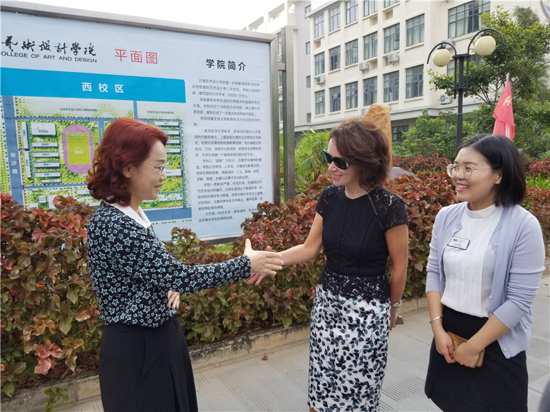 (北海市委常委、宣传部部长、副市长黄江与英国德比大学常务副校长Judith握手接见)