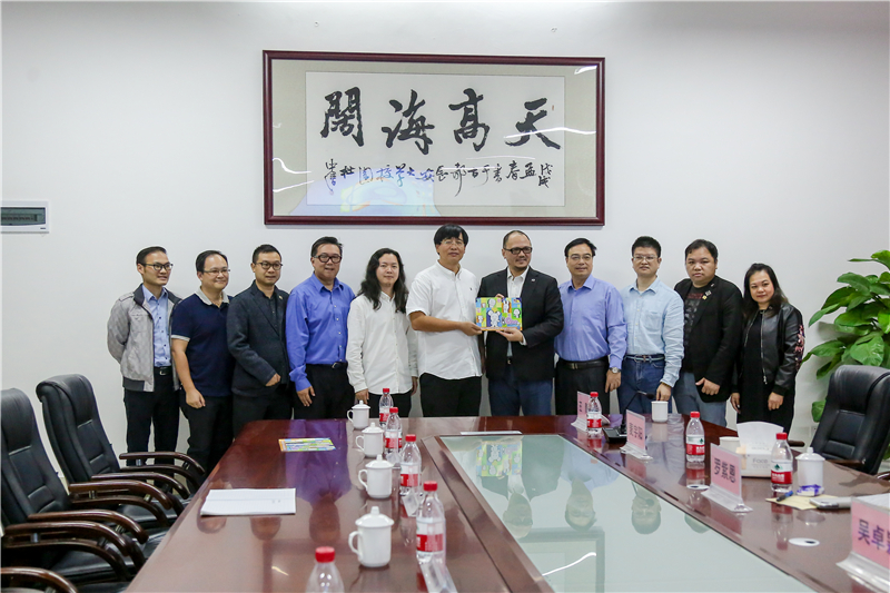 参观完毕,在图书馆五楼会议室双方就文化创业与设计创意开展了交流座谈会。亚太文化创意产业总会创会会长、玩具易集团有限公司Toy2创办总裁蔡汉成在会议上跟大家分享了他的创业经历及对自创品牌Qee的详细讲解与展示。考察团成员也分别就品牌创立的影响力、高校大学生的设计创意、品牌活动的特色亮点等方面进行了分享与交流。