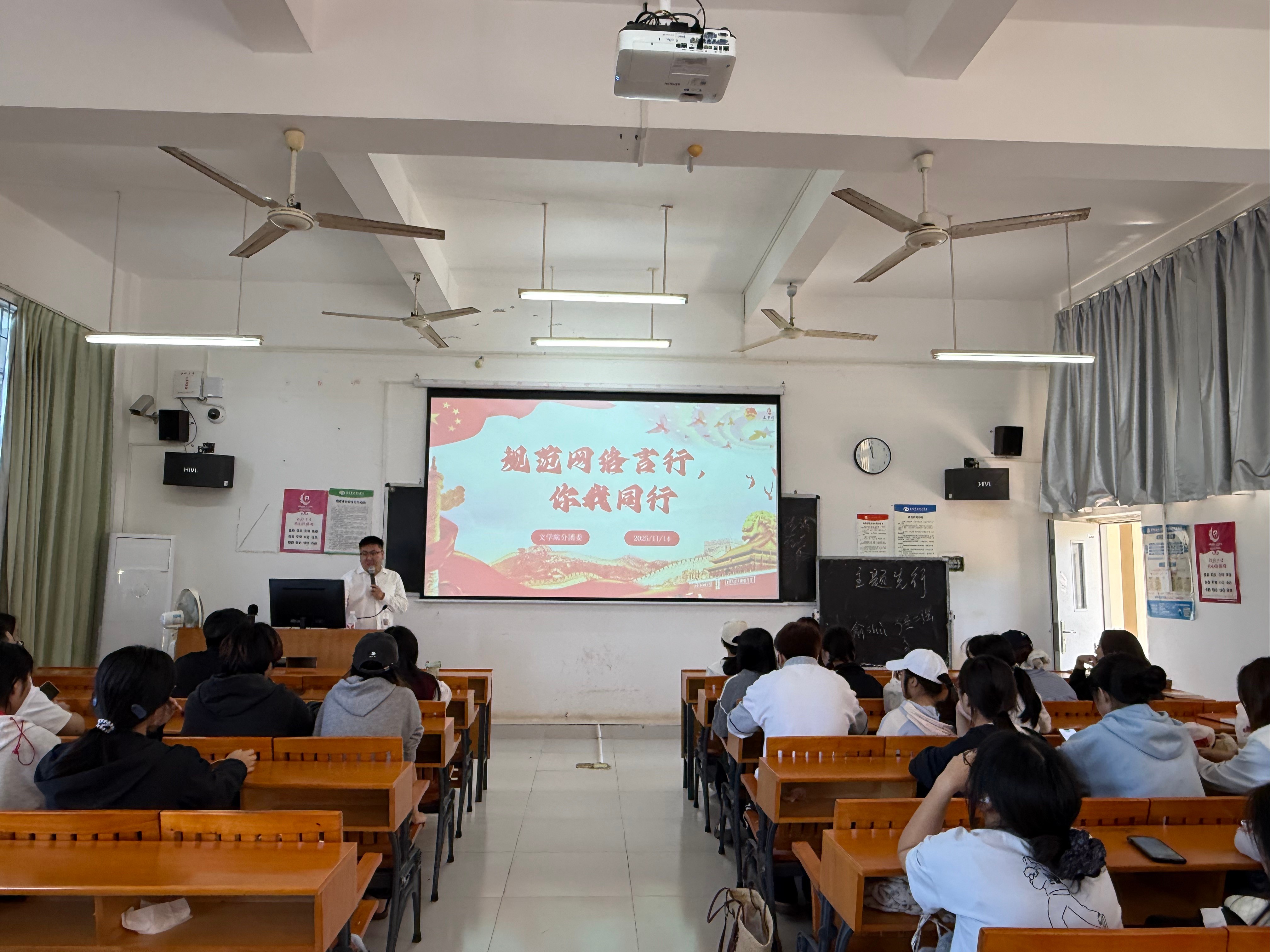 为深入学习贯彻习近平总书记关于网络强国的重要思想,引导团员青年科学识网、文明用网、理性发声。11月14日,文学院分团委于觉悟楼303开展“规范网络言行·你我同行”为主题的团日活动。文学院分团委书记以及各班级学生干部参与本次活动。
