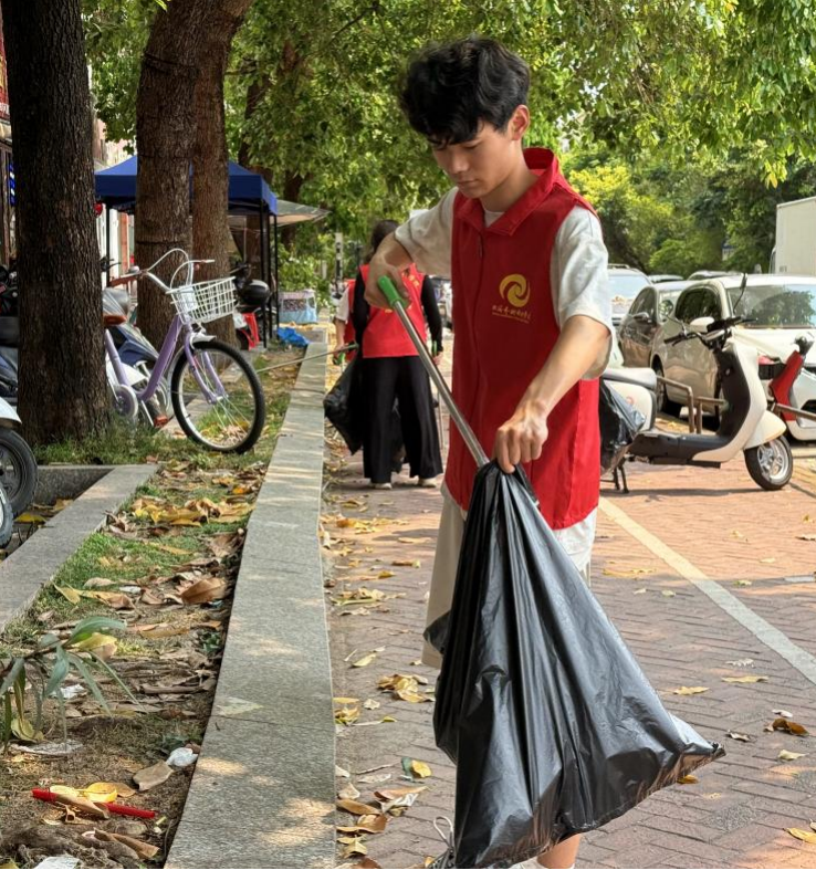 除了校外路面的清扫,校园内的清洁也在火热进行中。志愿者们认真清扫每一片落叶、每一张纸屑,确保每一寸土地都恢复清新与活力。烈日炎炎下,虽然汗水浸湿了他们的衣背,但志愿者们的干劲却丝毫未减,红色马甲的光芒映射在路人的脸上,周边的居民纷纷投来赞许的目光,更有不少路人被这份热情所感染,主动加入志愿者队伍中,一起为街道的清洁贡献自己的力量。在本次校园清洁行动中,志愿者们用实际行动为同学们树立了榜样。未来,我校青志协也将继续组织各类志愿服务活动,让北艺学子在活动中增强团队合作意识和社会责任感,在奉献中收获,让青春在奋斗中绽放更加绚丽的光芒!(校团委青年志愿者协会/图)
