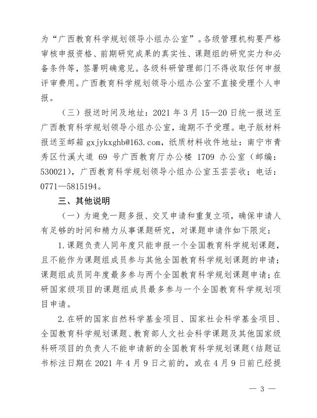 广西教育科学领导规划小组关于做好2021年度全国教育科学规划课题申报工作的通知