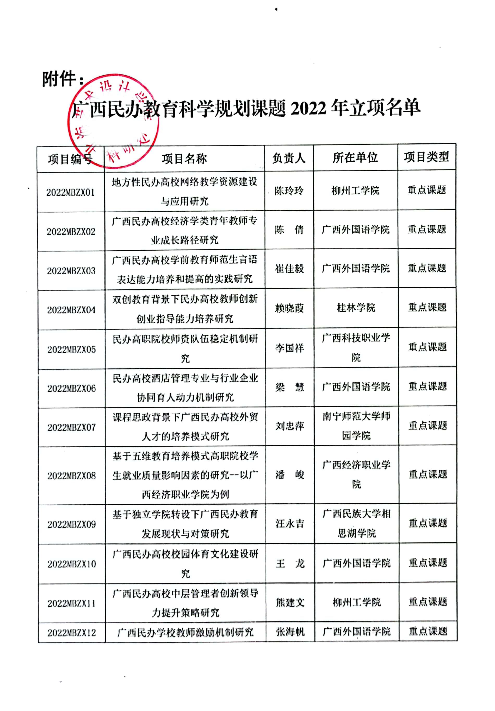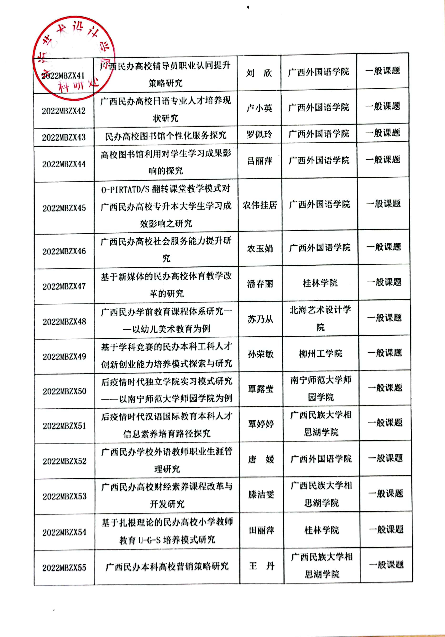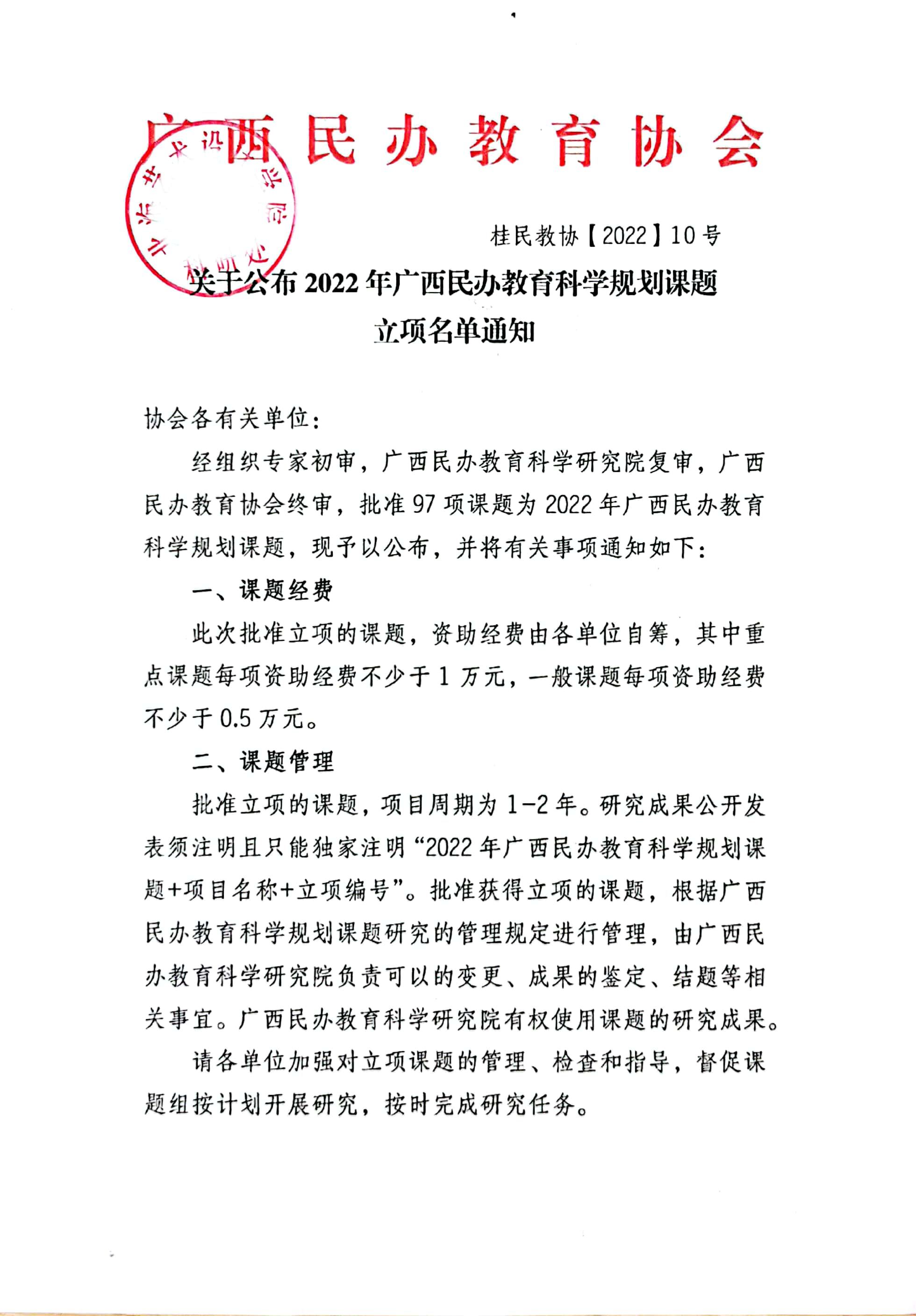 桂民教协[2022]10号关于公布2022年广西民办教育科学规划课题立项名单通知