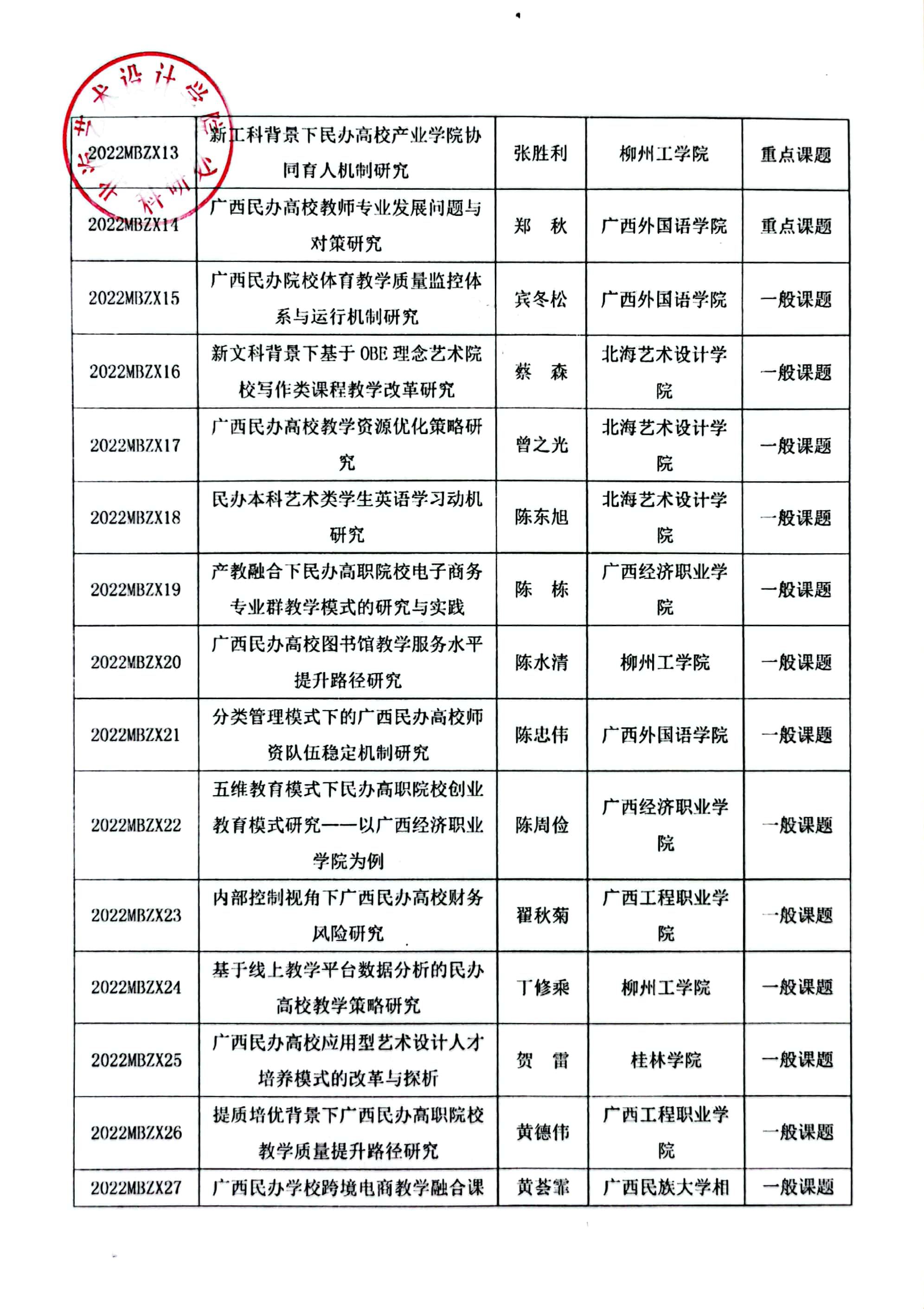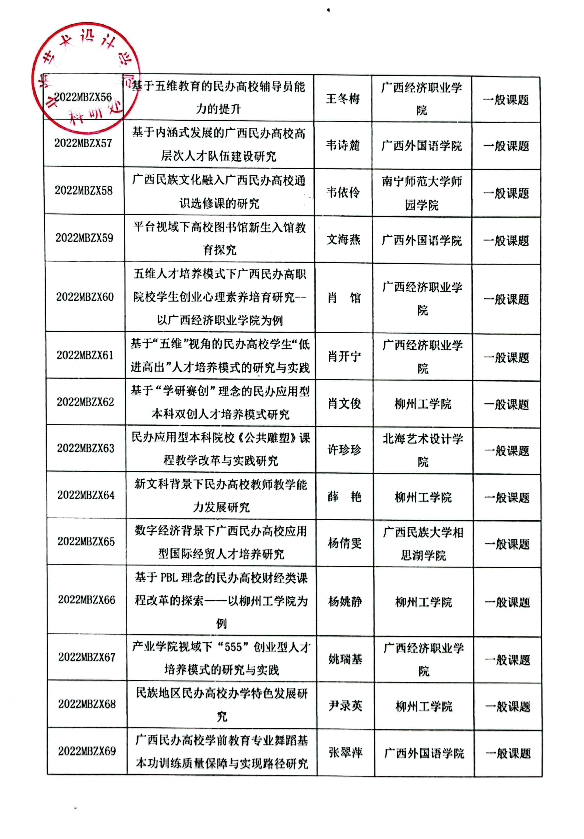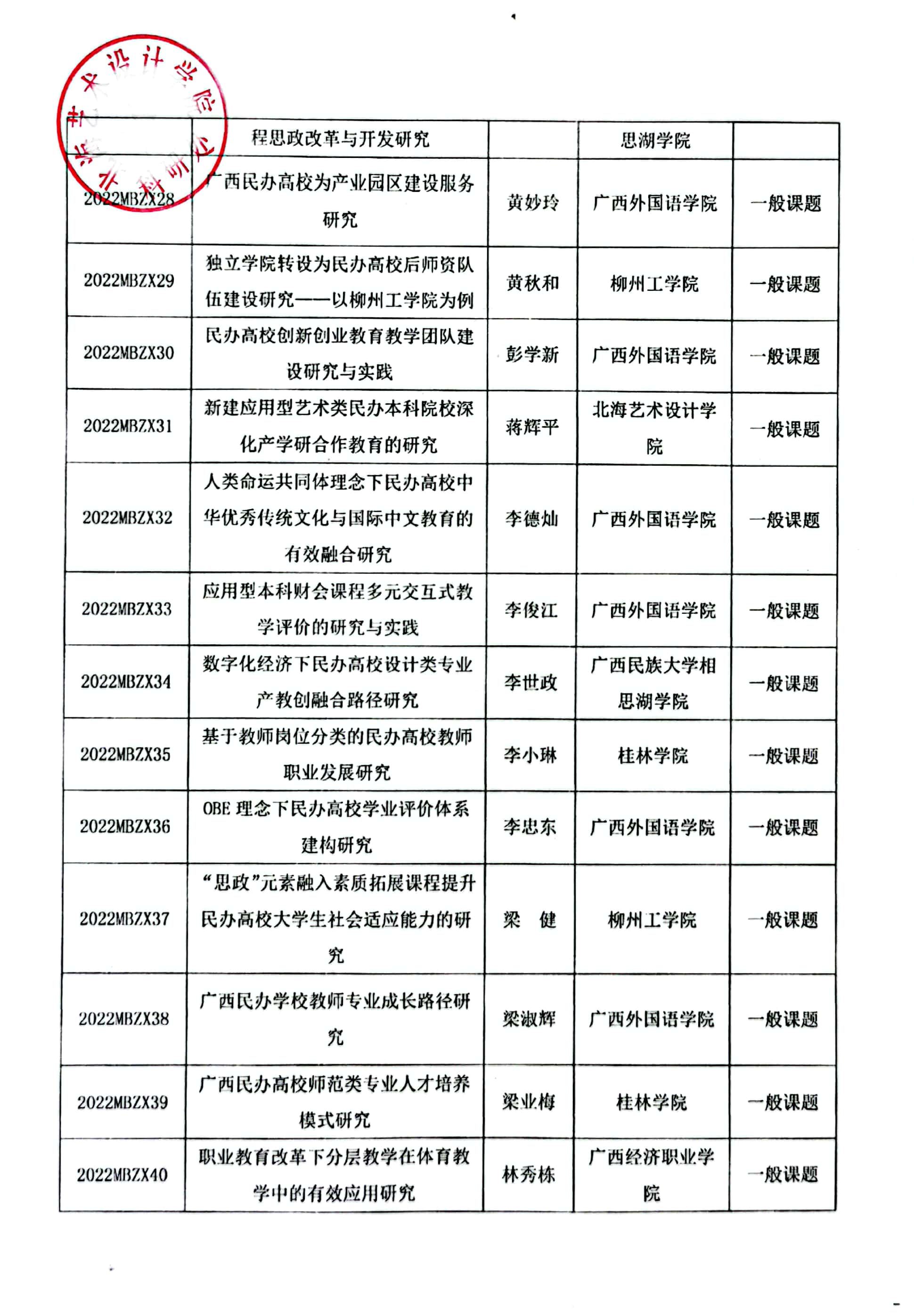 桂民教协[2022]10号关于公布2022年广西民办教育科学规划课题立项名单通知